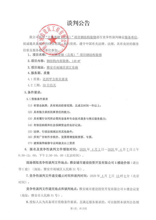 城投建工“大興壹號(北苑)”項目鋼結(jié)構(gòu)裝修競爭性談判公告