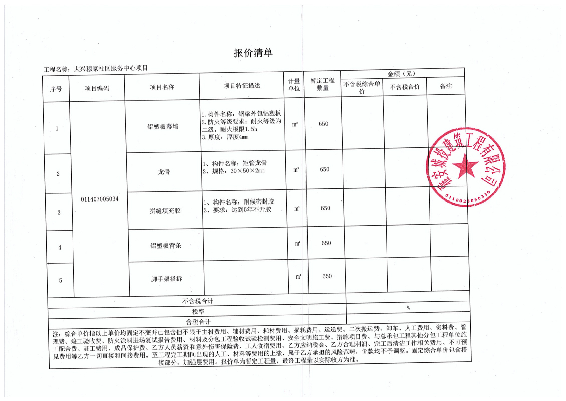 大興穆家社區(qū)服務(wù)中心項目鋼結(jié)構(gòu)外包鋁塑板競價公告