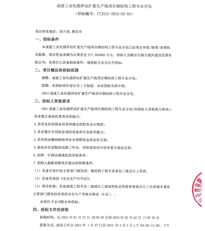 成建工業(yè)化攪拌站擴(kuò)建生產(chǎn)線項目鋼結(jié)構(gòu)工程專業(yè)分包公告